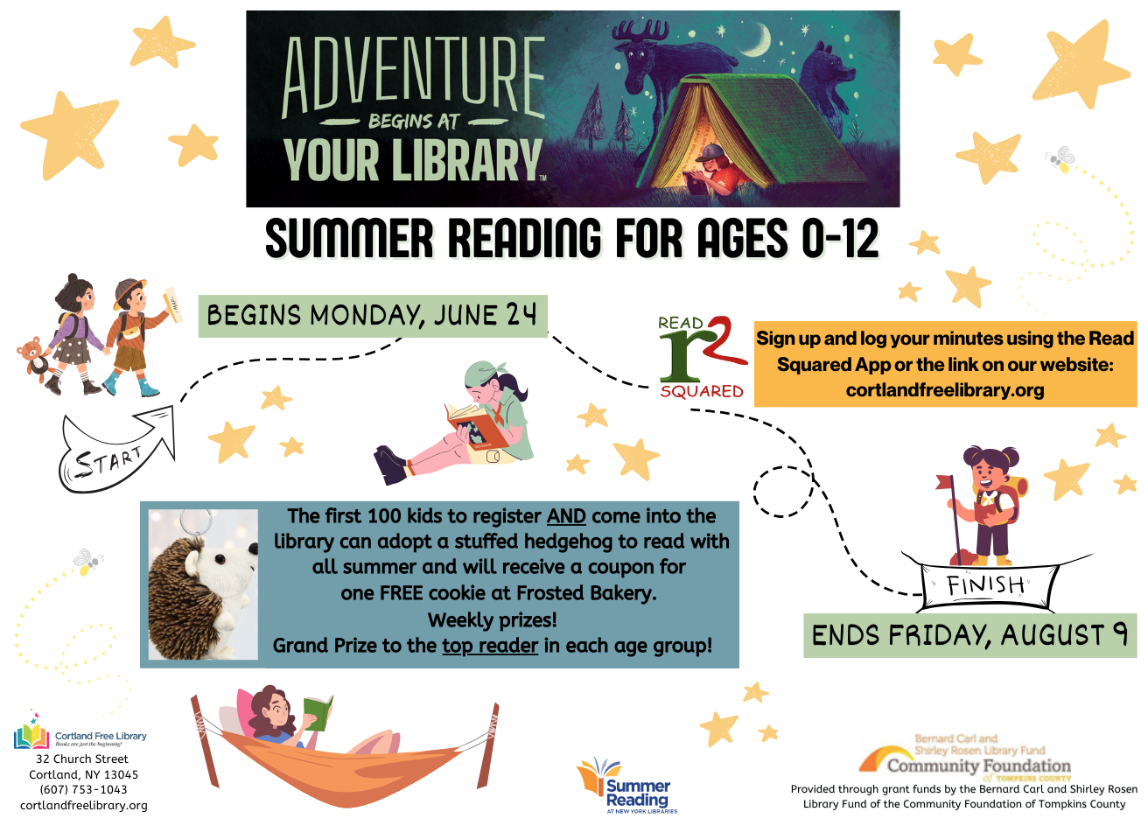 Learn more at cortlandfreelibrary.org/summer-reading-program or stop by the library at 32 Church Street, Cortland (the youth section is in the downstairs).